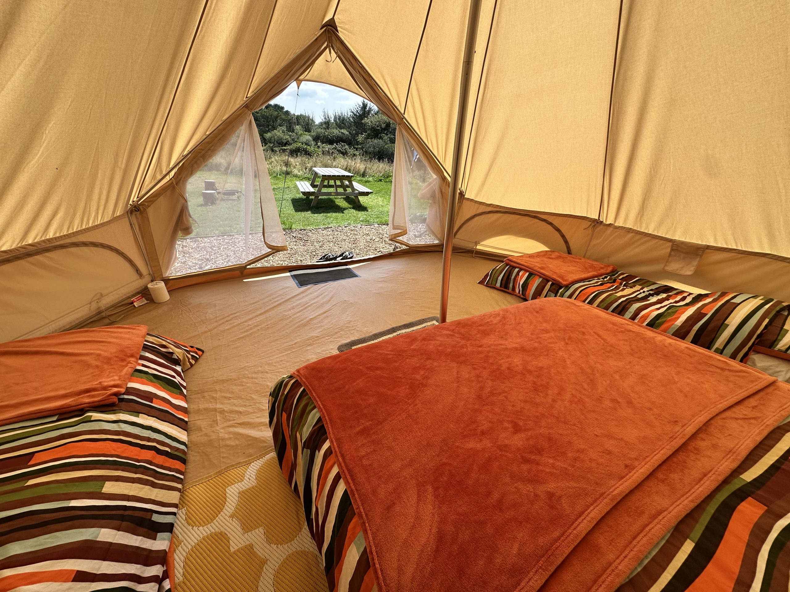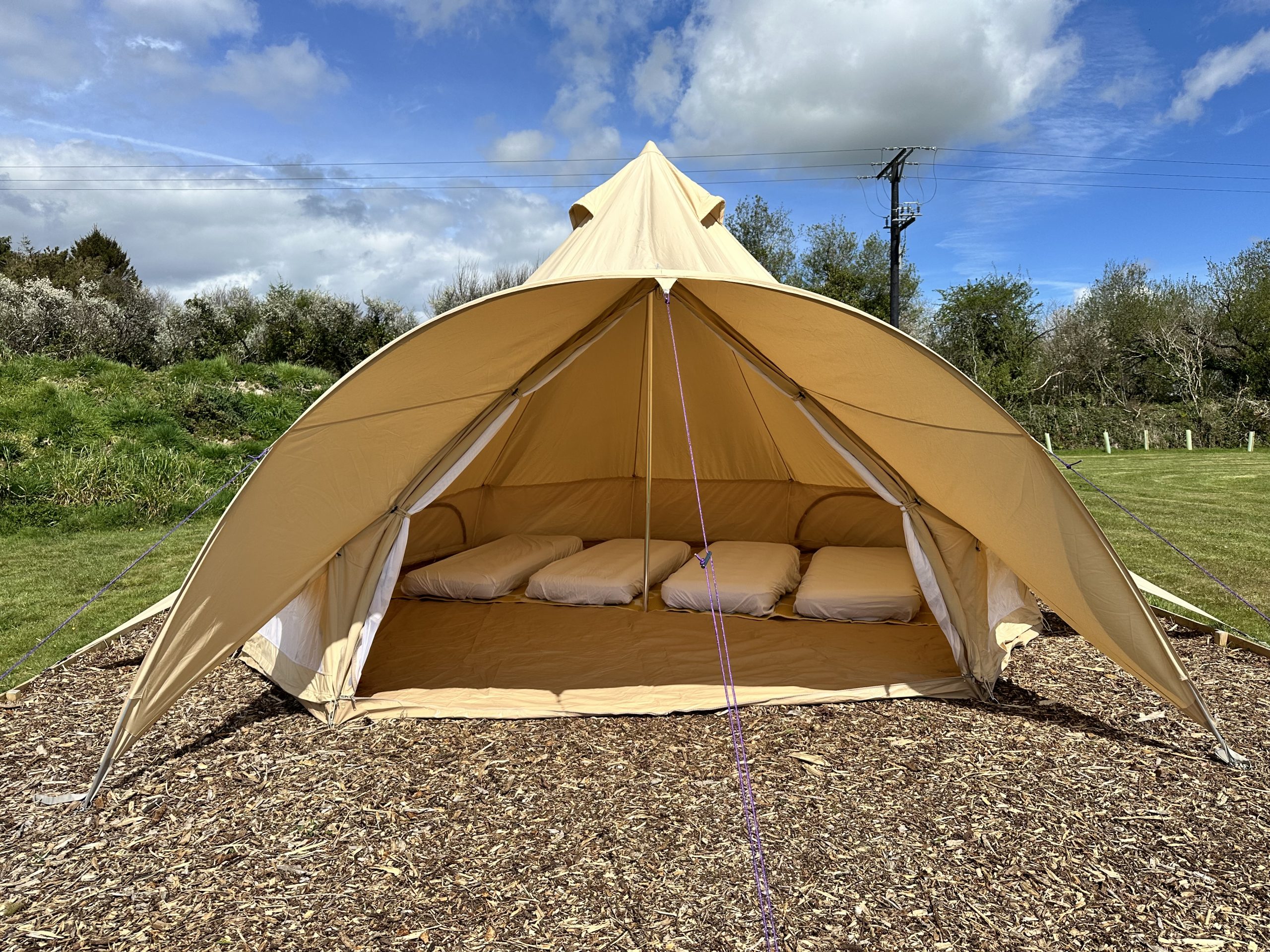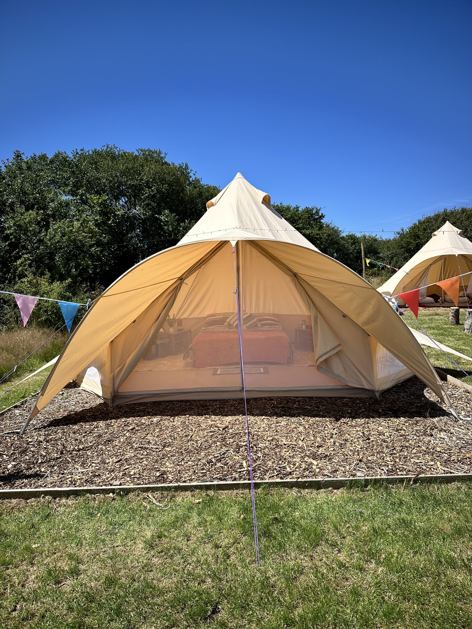 This bell tent is unfurnished except for 4 single air beds with fitted sheets. Please bring all bedding, towels and camping equipment with you. Shared facilities are nearby. Dogs welcome.